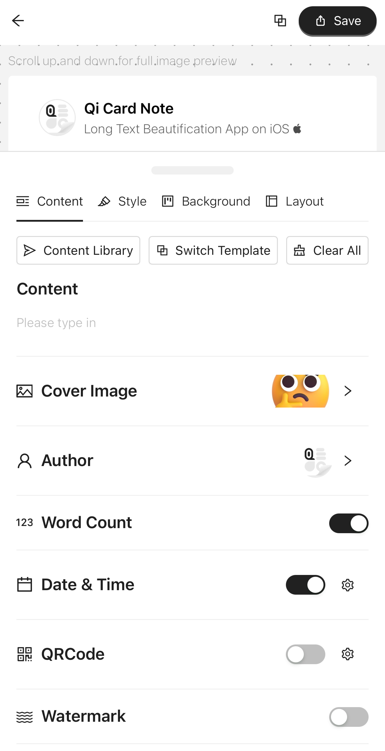 Turn your text into beautifully designed images. Create poetic quotes, showcase famous sayings, or share long passages in style. Customize cover images, display personal info, and tailor card designs—with tons of stylish templates to switch between. Perfect for sharing on all your favorite social platforms!