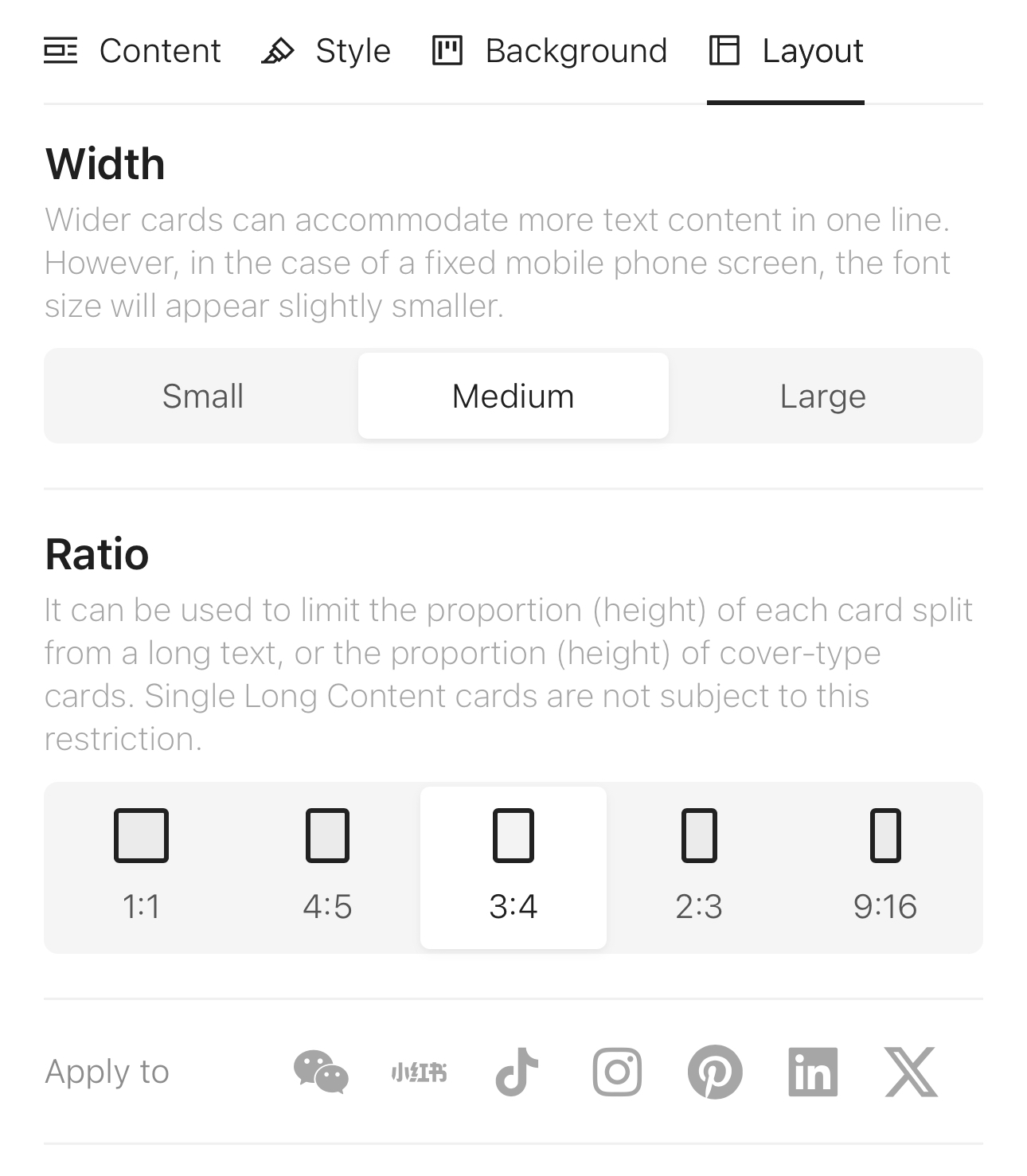 We hope your content stands out everywhere! We support multiple image ratios to adapt to various social media platforms, such as Tiktok, Twitter/X, Instagram, Snapchat, etc.
